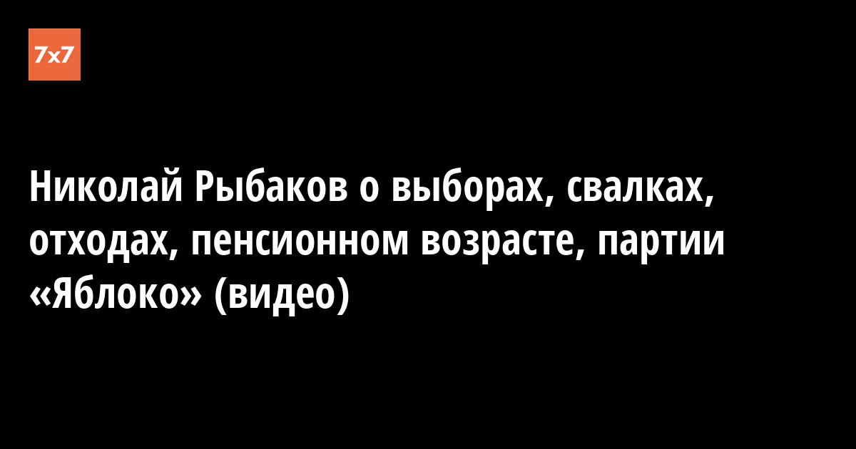 Николай Рыбаков о выборах, свалках, отходах, пенсионном возрасте, партии «Яблоко» (видео)