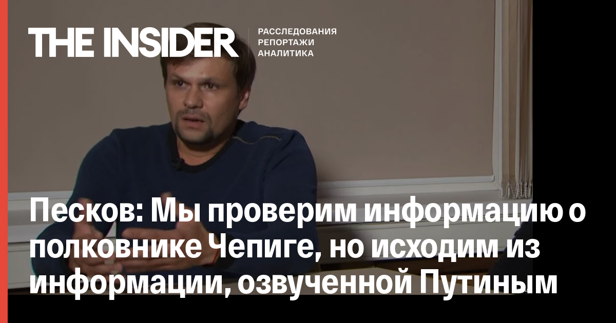Песков: Мы проверим информацию о полковнике Чепиге, но исходим из информации, озвученной Путиным