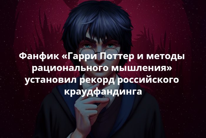 На сайте Planeta.ru собрали 11,4 млн рублей на некоммерческую печать книги «Гарри Поттер и методы рационального мышления» Элиезера Юдковского. Это рекордный объем сборов для российского краудфандинга.