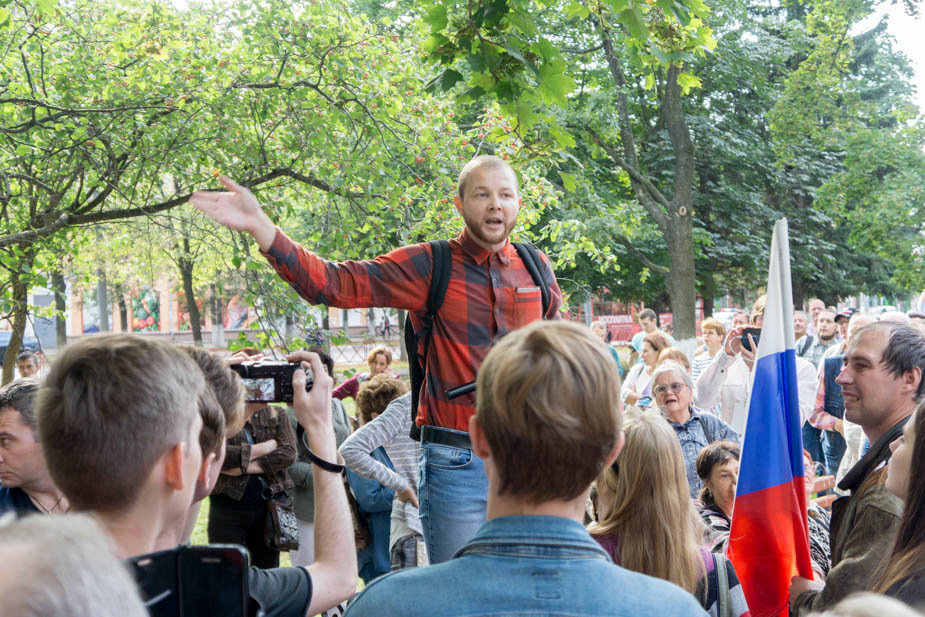 В день выборов, 9 сентября, в Ярославле на улице Свободы прошло несогласованное шествие сторонников политика Алексея Навального против повышения пенсионного возраста. За несколько часов до сбора участников шествия полицейские задержали руководителей ярославского штаба Навального. После проверки документов и беседы их отпустили. Александр Смирнов успел вернуться из отдела полиции к началу шествия.
