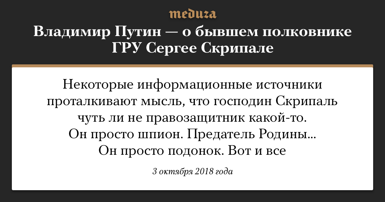 «Шпион, предатель, подонок». Владимир Путин — о Сергее Скрипале