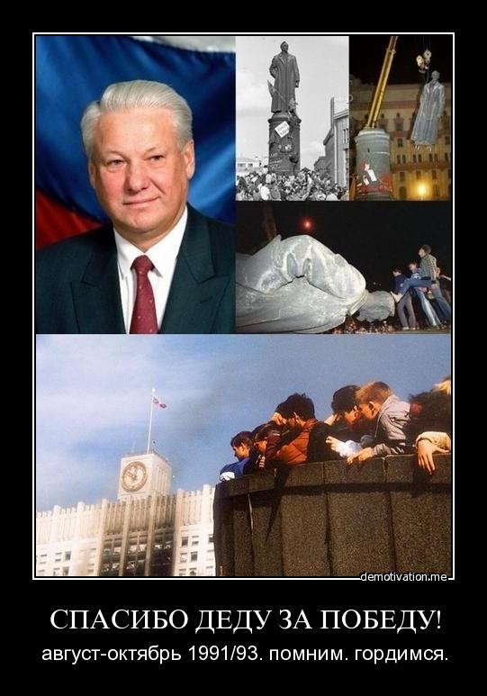 Борис Николаевич предстал народу настоящим древнегреческим героем, вступившим в затяжную битву с «лернейской гидрой», порождением Evil empire. В Августе-91 была отрублена лишь одна голова тоталитарного коммунистического монстра. Вторая же голова вскоре отросла и затеяла «коммуно-фашистский мятеж», обернувшийся расстрелом Белого дома.