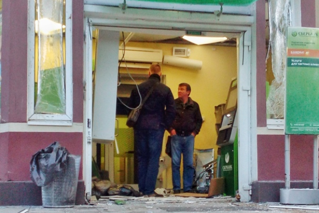 Около четырех часов утра грабители вошли в отделение банка в доме № 12 на улице Лебедева в Приморске. Они закрасили краской из баллончика камеры видеонаблюдения и взорвали терминал при помощи газа.