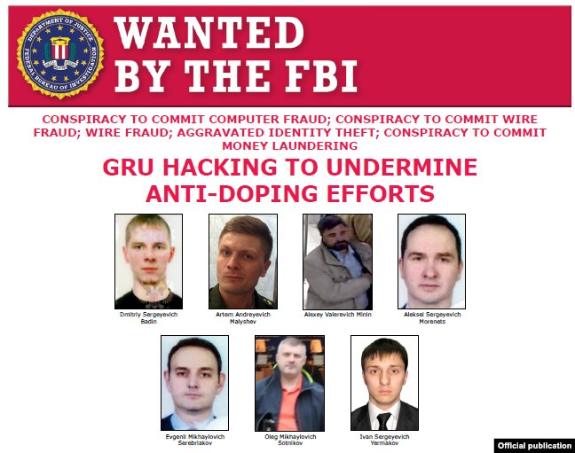 - Упоминавшиеся выше USADA, WADA и CCES, а также базирующаяся в Монако Международная ассоциация федераций атлетики, Спортивный арбитражный суд в Лозанне, ФИФА в Цюрихе, как утверждается, были атакованы ГРУ за их роль в расследовании и публичном осуждении допинговой программы, действовавшей в России при государственной поддержке, и за поддержку запрета на участие российских спортсменов в международных соревнованиях, говорится в обвинительном заключении. ГРУ также старалась похитить медицинские записи спортсменов, чтобы затем использовать их для дезинформационной кампании.