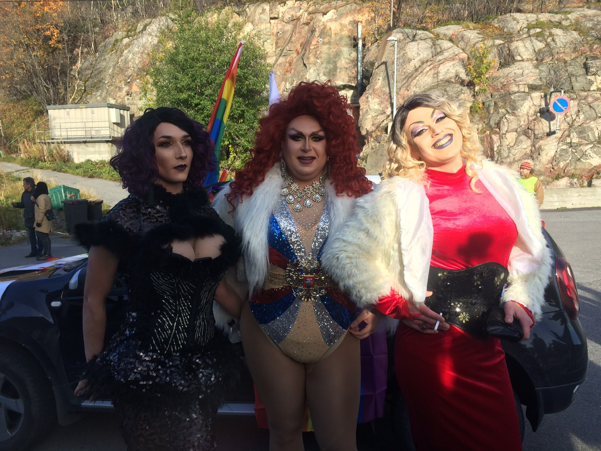 В целях безопасности — на всякий случай — прайд охраняют местные полицейские. Красивые норвежские мужчины с улыбками и радужными флажками на форме. Они радостно фотографируются с российскими травести-артистками. Одна из них — Мелони Лонг, муж Сергея Алексеенко, тоже Сергей. Они обручились в прошлом году в Нью-Йорке. Две другие — Марго Мандаринова и Люсьен Оливье — приехали из Петербурга. Вся троица элегантно шагает позади мэра на каблуках и в платьях, невзирая на погоду — в Киркенесе солнце и почти мороз. «Че сиськи-то так выставила, не замерзнут?» — «Какой там, у нее ж надувные, ха-ха!» — «Сама ты надувная! У меня все свое!» — «Не ссорьтесь, девоньки».