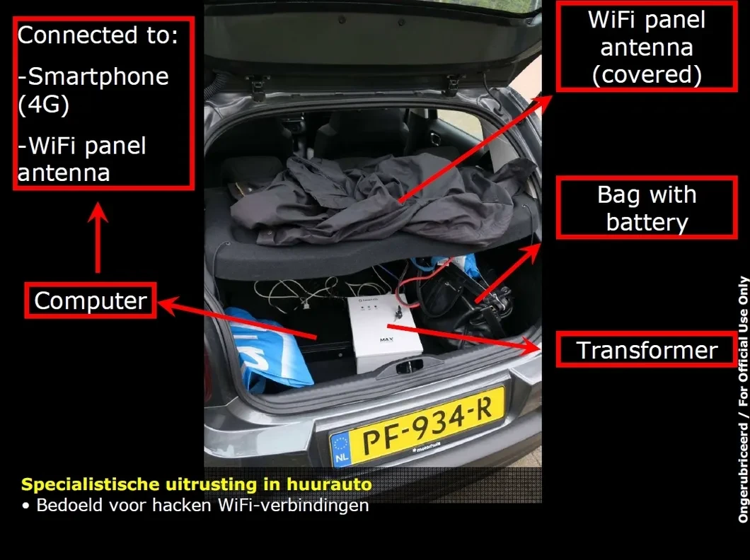 Российских «дипломатов» задержали 13 апреля в арендованном автомобиле Citroen C4 рядом со зданием ОЗХО. Военной разведкой и службой безопасности Нидерландов на месте были изъяты электронное оборудование, ноутбуки, телефоны, найдены доказательства кибератаки. Вишенка на торте: у одного из мужчин при себе обнаружили чек из такси, подтверждающий, что до аэропорта «Шереметьево» он ехал от офиса разведслужбы, сообщает газета De Telegraaf.