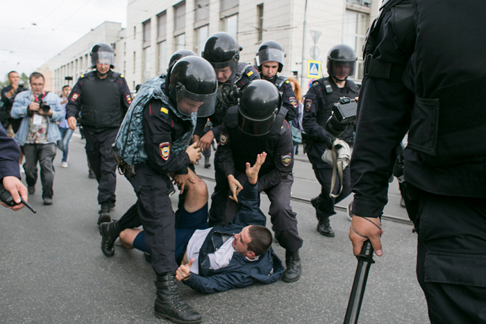 Это участники акции против пенсионной реформы. И вот как их задерживали в Петербурге: 25 фотографий