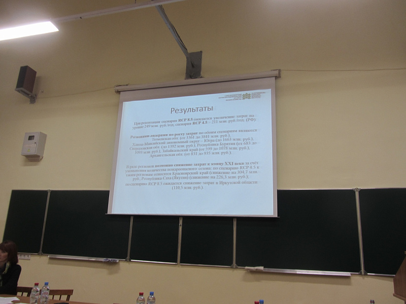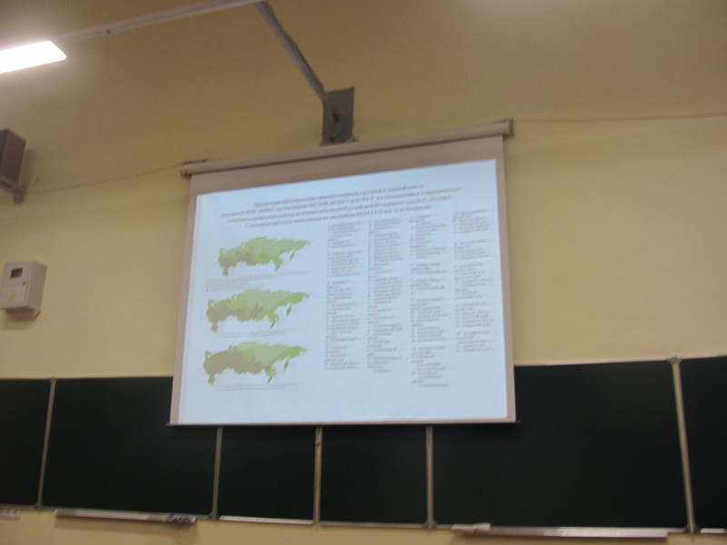 Выступление молодой девушки — представителя Санкт-Петербургского института лесного хозяйства было посвящено прогнозам динамики в лесном секторе экономики под влиянием глобального потепления. Были указаны регионы, где ожидается минимальное и максимальное повышение суммы годовых активных температур, прогнозы динамики численности лесных вредителей и вспышек болезней леса. Были указаны также прогнозы динамики границ природных зон. Кстати, в Центральном Черноземье ожидается заметное повышение зимних, менее значительное повышение весенне-осенних и некоторое снижение летних температур при увеличении годовой суммы осадков.
