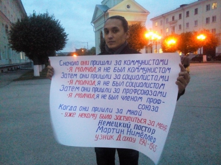 Волонтеры штаба Навального Алексей Иванов и Юлия Шевченко вышли на одиночные пикеты.