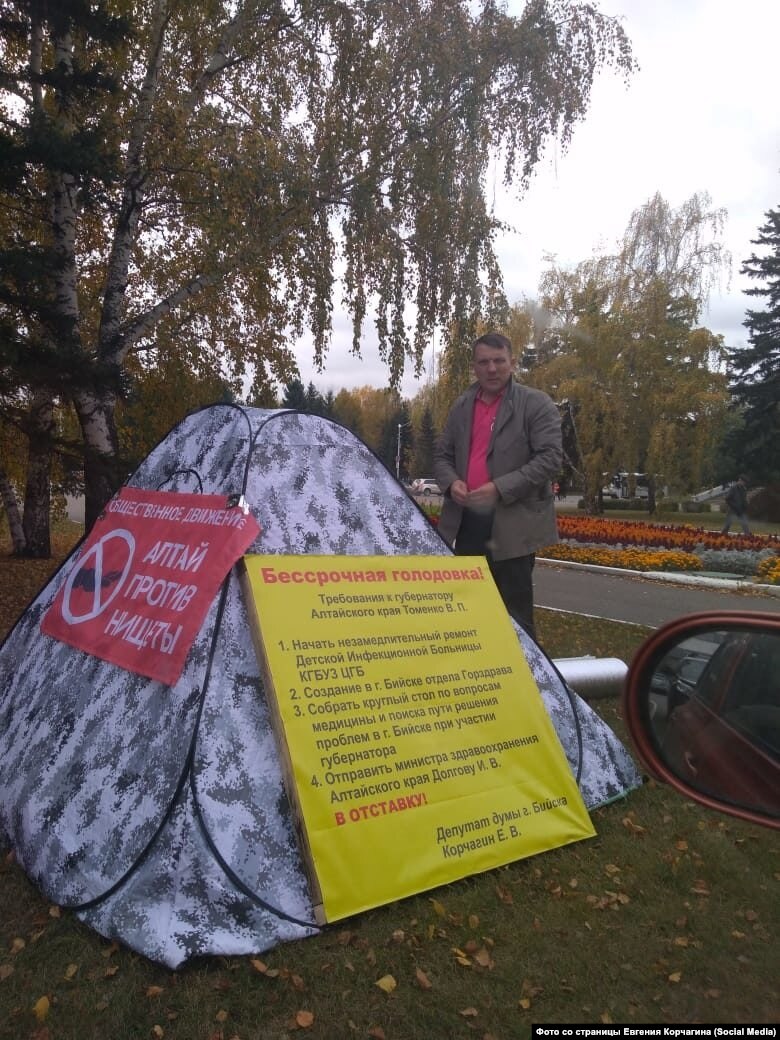 Депутат городской думы Бийска Алтайского края Евгений Корчагин объявил бессрочную голодовку и выдвинул ряд требований, касающихся медицины. В их числе – отставка регионального министра здравоохранения Ирины Долговой.