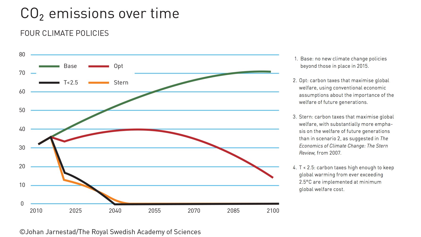 - Нордхаус получил награду за исследование взаимосвязи изменений климата и экономики. В частности, его исследование показывает, что наилучшее решение проблем с вредным выбросом парниковых газов — глобальная система налогов на выбросы углекислого газа, которую выплачивают все страны. Без этих налогов выбросы СО2 будут непрерывно увеличиваться, писал Нордхаус.