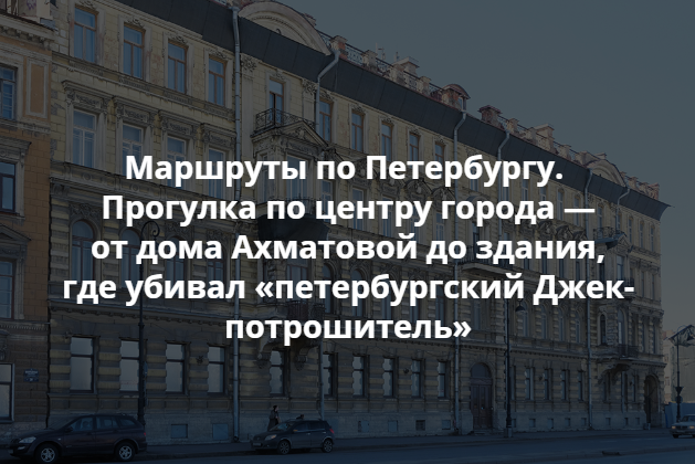 По мотивам этих писем «Бумага» составила гид для прогулки по центру Петербурга: от здания, где убивал «петербургский Джек-потрошитель», до жилья Анны Ахматовой мимо дома с «коммуналкой Майка» из фильма «Лето».