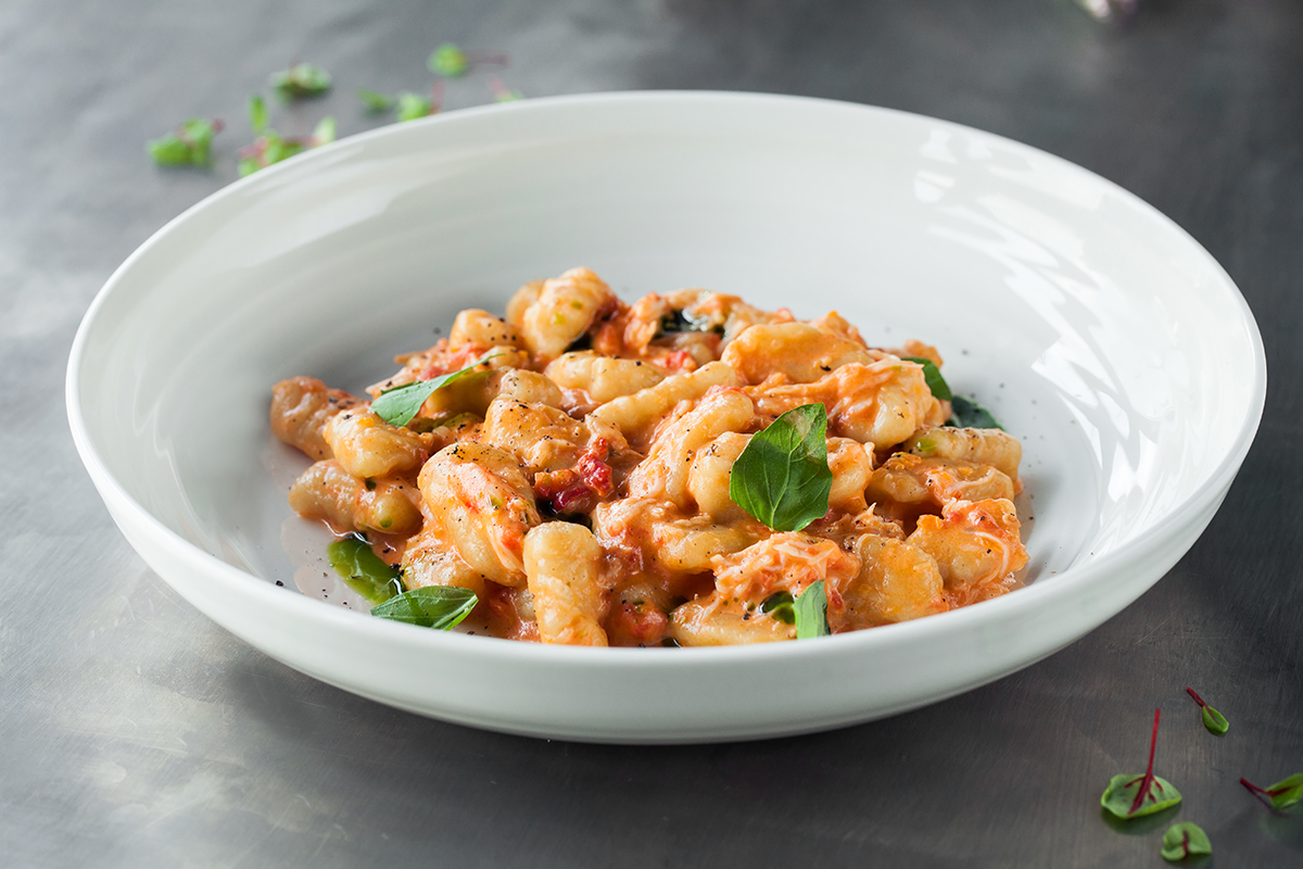 Один из главных разделов меню посвящен необычным видам пасты: орекьетте с оливками и черри, карамелле с телятиной, ньокки с крабом и орзо с томлеными щечками. Вся паста изготавливается вручную прямо в ресторане, авторы обещают большие порции. В качестве альтернативы пицце в остерии будут подавать открытую чиабатту с начинкой.