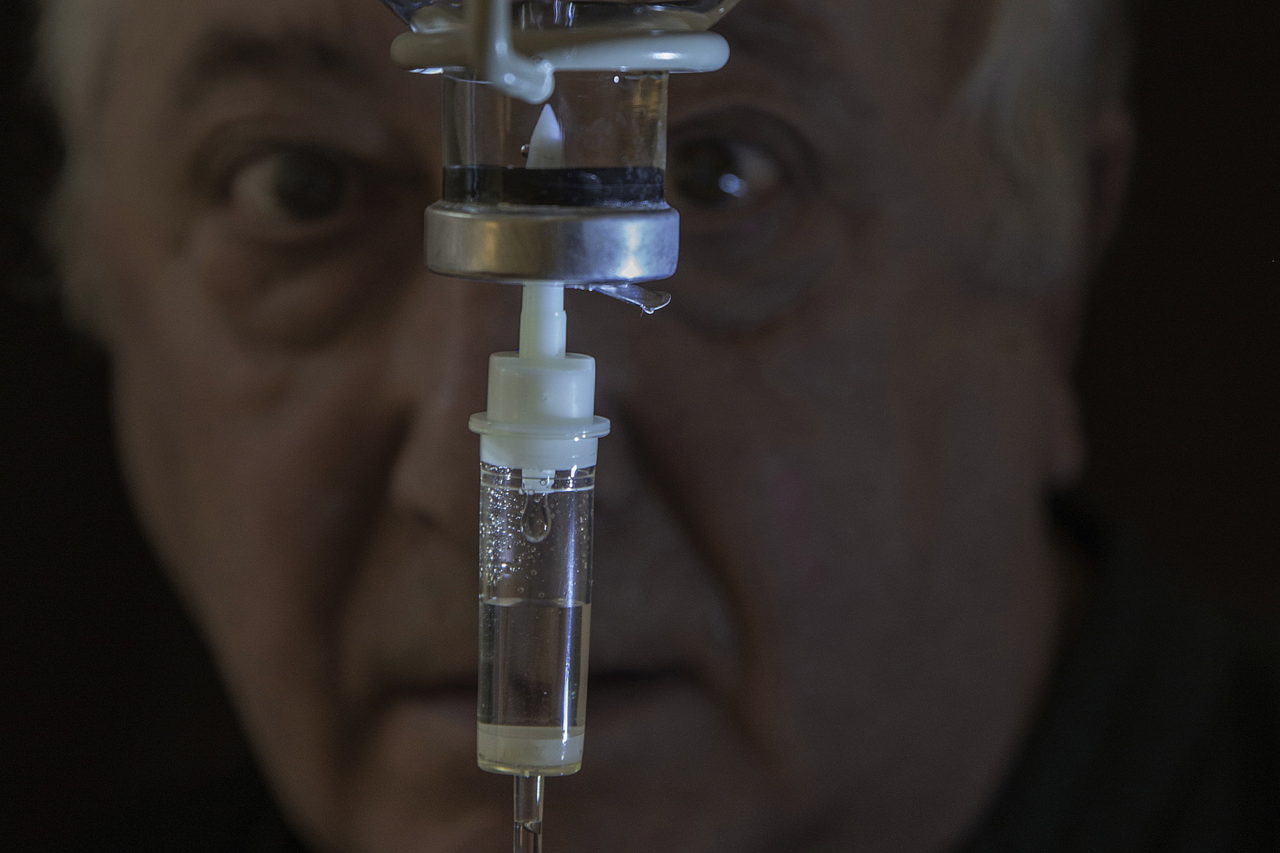Врач отделения химиотерапии съемку разрешила: ладно, снимайте, хотя бы отвлечетесь. Была уже зима, за окнами бывшего послевоенного санатория для военачальников валила хлопьями тотальная метель. Конечно, отвлечься от химиотерапии, особенно от ее побочных эффектов, практически невозможно. Но мне нужно было сделать несколько кадров этого этапа. Я старался. Только показатели крови становились хуже.