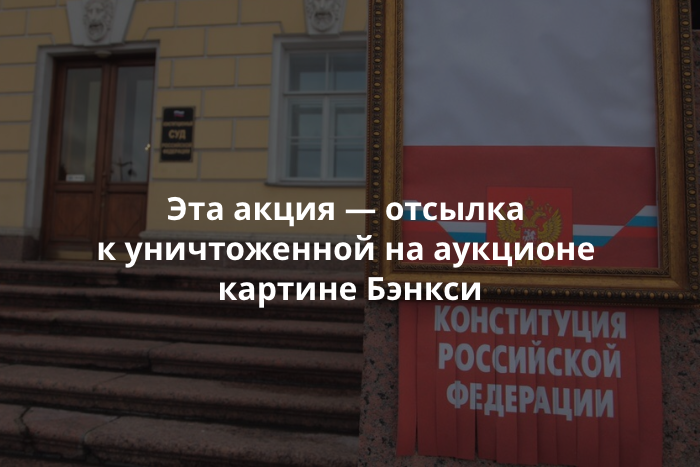 В Петербурге активисты повесили в рамку порезанную обложку Конституции. Это отсылка к уничтоженной на аукционе картине Бэнкси