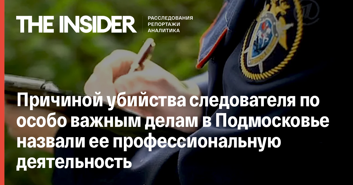 Причиной убийства следователя по особо важным делам в Подмосковье назвали ее профессиональную деятельность