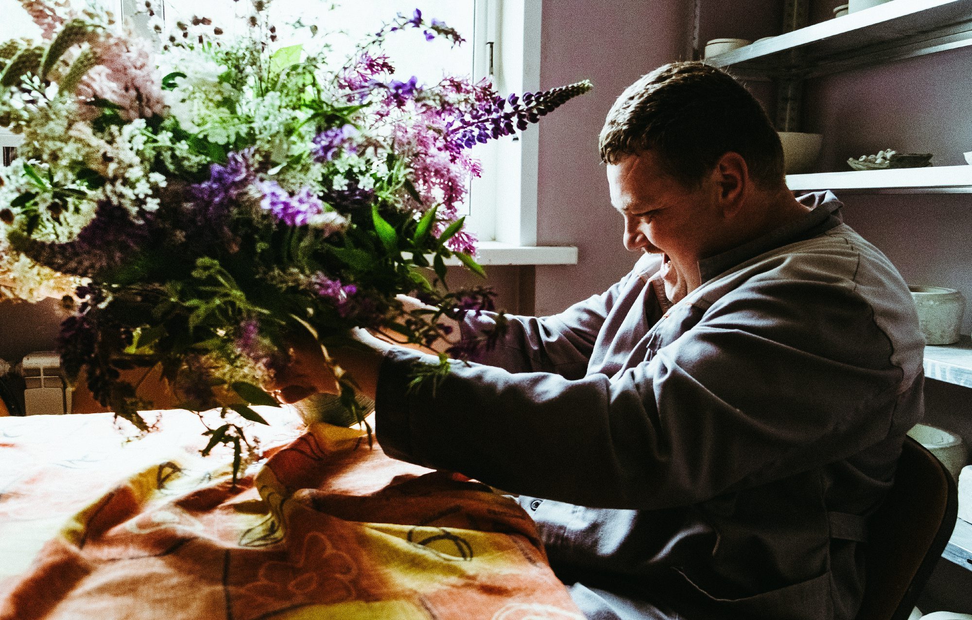 Портрет Андрея Таких, как Андрей (хотя таких, как он, конечно, больше нет), наше общество видеть не хочет. Таких, как он, не берут на работу. Несмотря на то что они могут и любят работать. К счастью, есть «Турмалин». В его творческих мастерских сейчас ежедневно занимаются 60 человек с разными ментальными нарушениями. Помимо работы, делают простые повседневные вещи: обедают, убирают, гуляют. Убрать со стола, помыть пол, собраться на прогулку — эти простые действия тоже важная часть программы реабилитации.