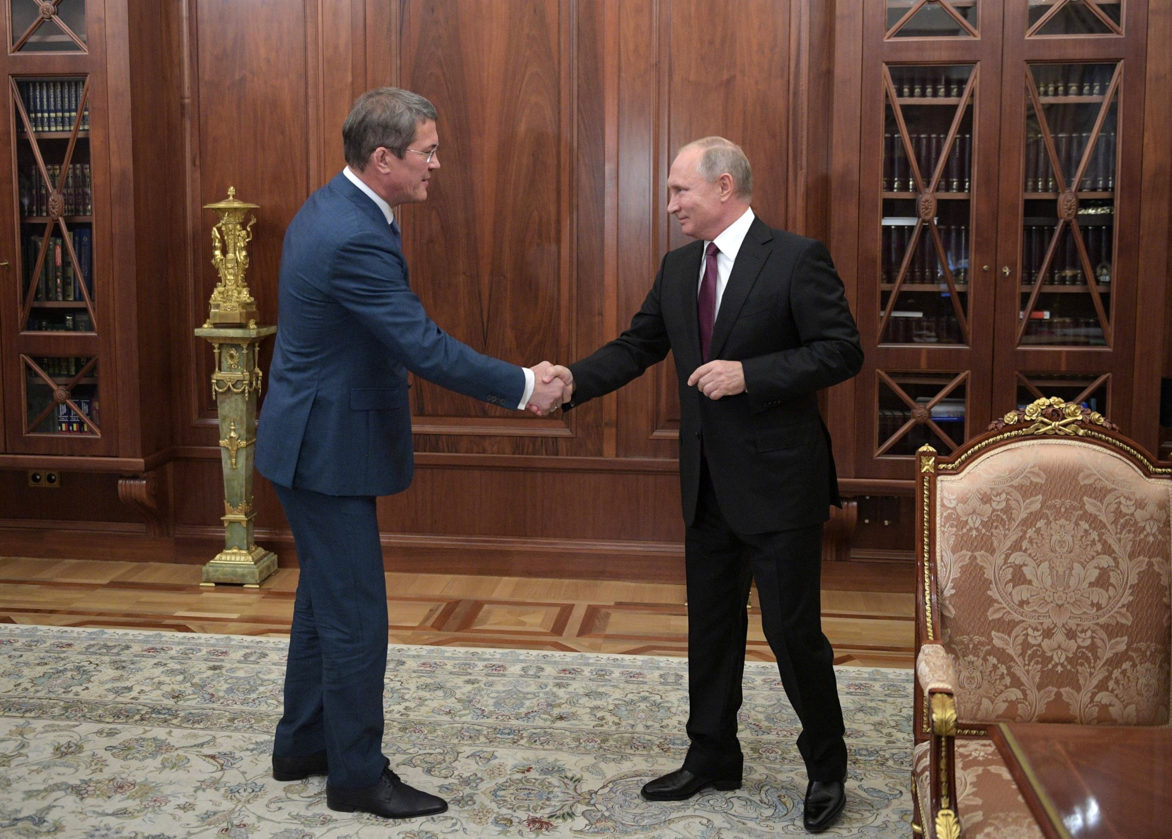 Алексей Дружинин / Sputnik / Scanpix / LETA Новый глава Башкирии Радий Хабиров встречается с Владимиром Путиным, 11 октября 2018 года