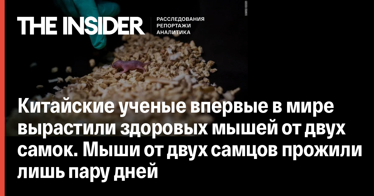 Китайские ученые впервые в мире вырастили здоровых мышей от двух самок. Мыши от двух самцов прожили лишь пару дней
