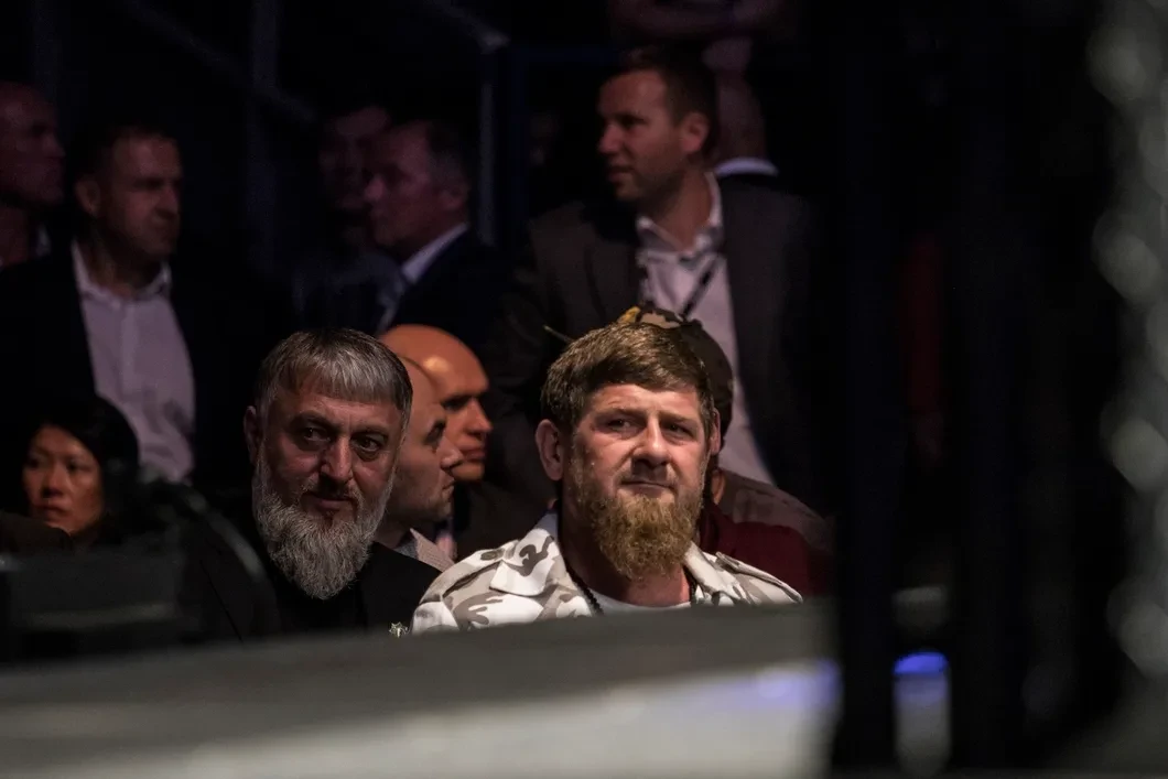 Адам Делимханов и Рамзан Кадыров на турнире UFC в Олимпийском 15 сентября. Фото: Влад Докшин / «Новая газета»