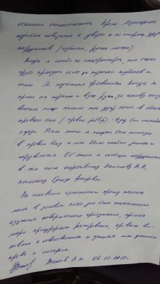 «При выходе из спецтранспорта конвойной службы в отношении спецконтингента (меня и иных лиц) применялась физическая сила. Я сам лично видел, как заместитель начальника СИЗО-5 по кадрам — Мустафин бил руками и ногами одного из арестованных, который в этот момент сидел на корточках со взятыми руками за шею. […] Кроме Мустафина, подобное я видел со стороны других сотрудников (избиение, ругань матом). Когда я сошел со спецтранспорта, мне также грубо приказали сесть на корточки подбежав к стене. Я подчинился требованиям. Когда я присел на корточки, и взял руки за голову неизвестное лицо нанесло мне удар ногой в область правого бока (правых ребер). Удар был нанесен сзади. После этого я ощутил боль сильную в правом боку и мне было тяжело дышать и передвигаться», — пишет Вахитов (орфография и пунктуация оригинала сохранены — ОИ).