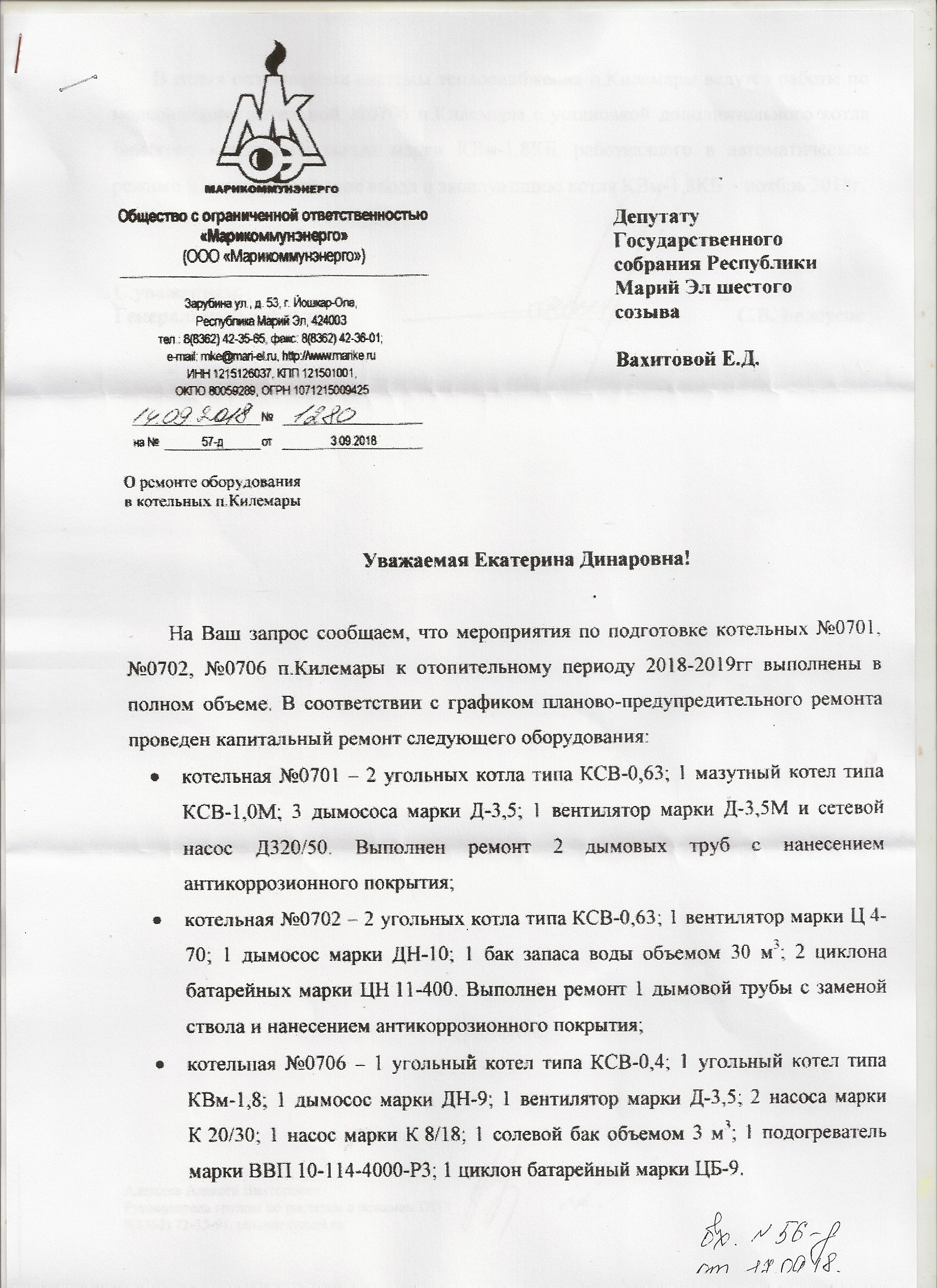 Сегодня мы продолжим тему про котельные в поселке Килемары . В прошлый раз я писал, что обращался к депутату Госсобрания республики Марий Эл Вахитовой Е.Д . Расписывать все вновь я не буду. Если кто-то не «в теме» или забыл, смотрите по ссылке https://7x7-journal.ru/post/110780