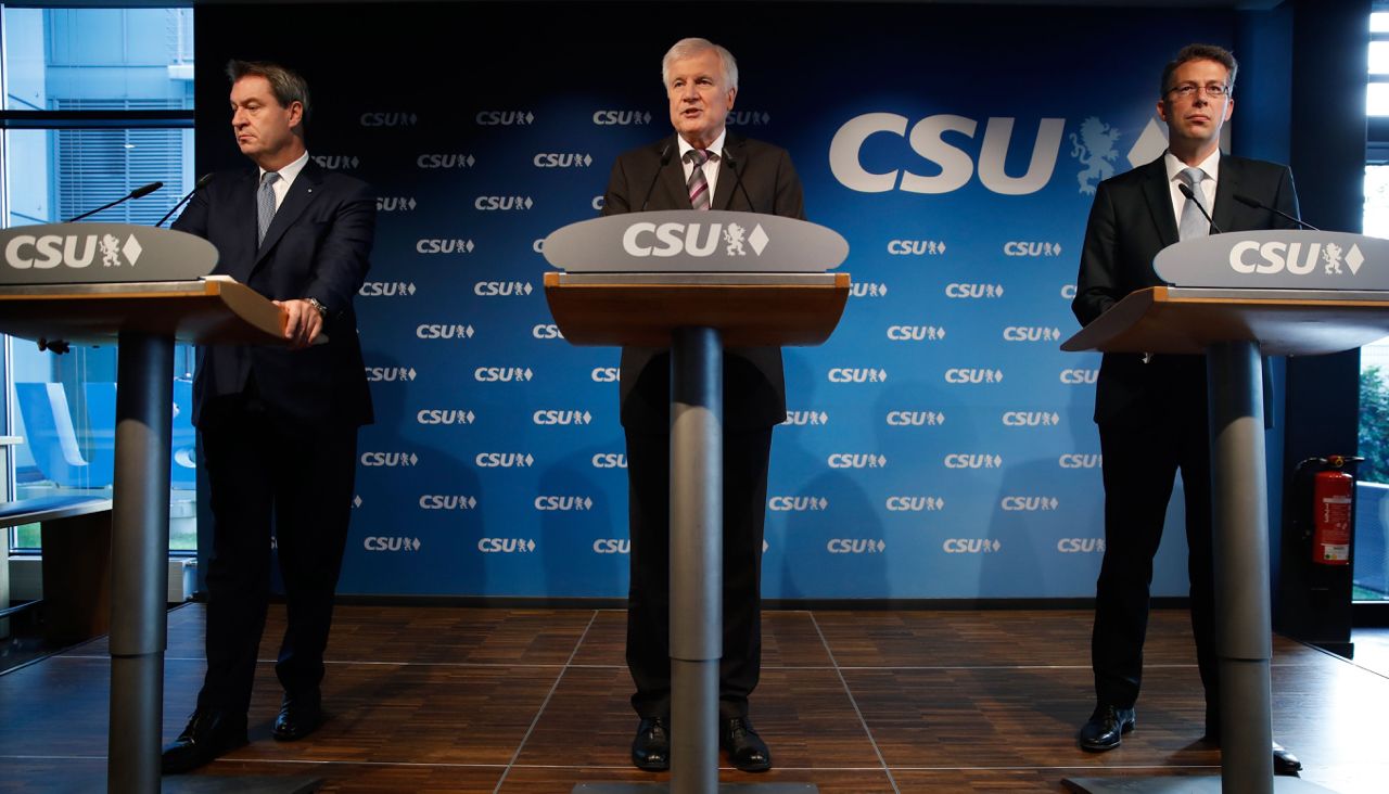 Odd Andersen / AFP / Scanpix / LETA Лидеры «Христианско-социального союза» на пресс-конференции по итогам выборов в Баварии 15 октября 2018 года