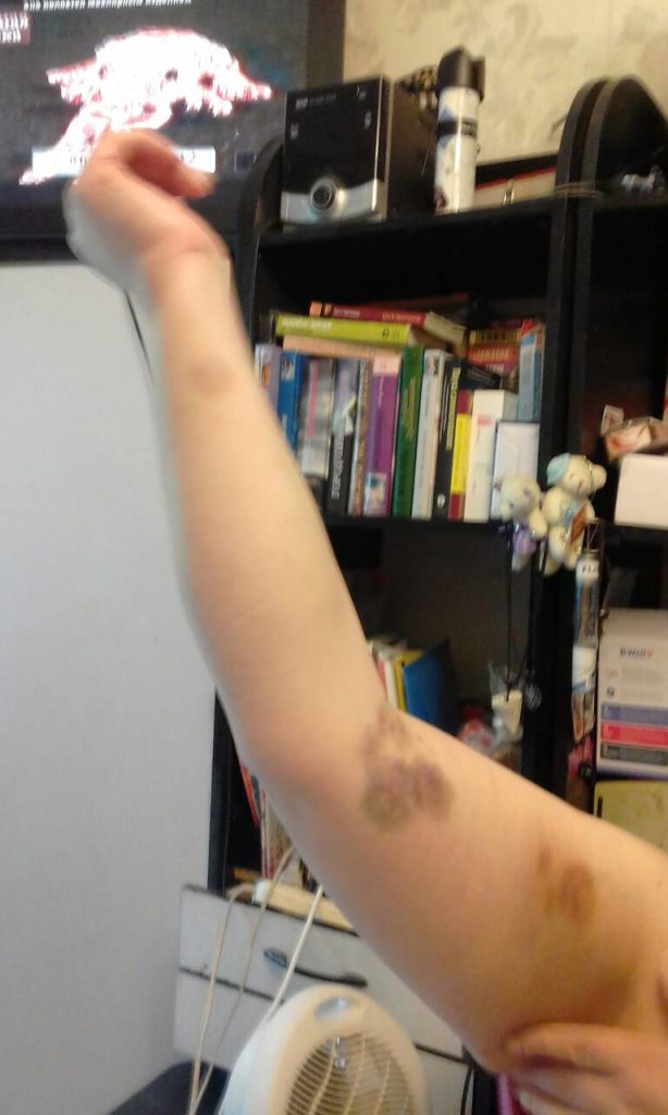 – На фотографиях телесных повреждений, полученных женщиной, мы видим многочисленные гематомы, ссадины и кровоподтеки в области верхней части левого бедра, на правом бедре, на обеих руках, – прокомментировал ответ пресс-службы Святослав Хроменков. – Мы основательно полагаем, поскольку это подтверждается видеозаписью в ТЦ "Леруа Мерлен", что указанные телесные повреждения наступили от незаконных действий сотрудника, выразившихся в том числе в необоснованном применении спецсредств, которые, согласно комментарию пресс-службы, якобы не применялись.