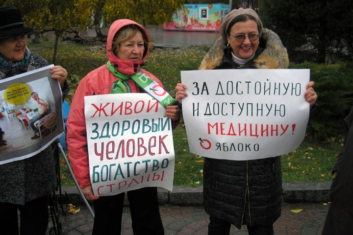 Пикет «За достойную медицину» прошел в Новосибирске. Активисты «Яблока» протестовали против деловой застройки на территории горбольницы №34 и оптимизации медучреждений.