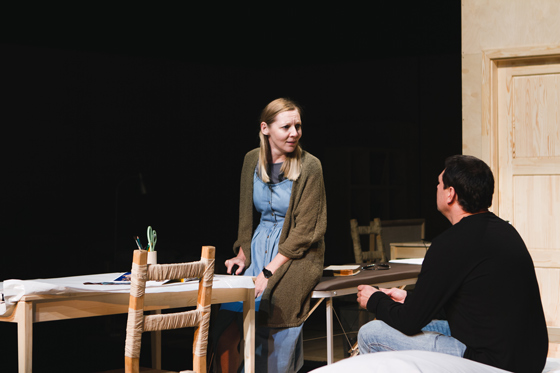 Конечно, постоянно вспоминается фильм «Девять дней одного года» с его любовным треугольником — с Лелей, выбирающей между увлеченным наукой мужем и влюбленным другом. Там тоже шла речь об утопии грядущего человеческого счастья, во имя которого сейчас нужны жертвы. В шестидесятые никакого предчувствия катастрофы в сюжете не было, но некоторое ощущение того, что глобальная история непременно сминает и портит человеческую жизнь, конечно, присутствовало. Конфликт личного и общественного в спектакле Кулябина вообще вынесен за скобки: чем занят Павел, нам неизвестно, хотя, возможно, он и делает нечто важное. Для создателей спектакля его увлечение — это только способ уйти от реальности, сначала вроде бы вполне безобидный, но как окажется в финале — трагический.