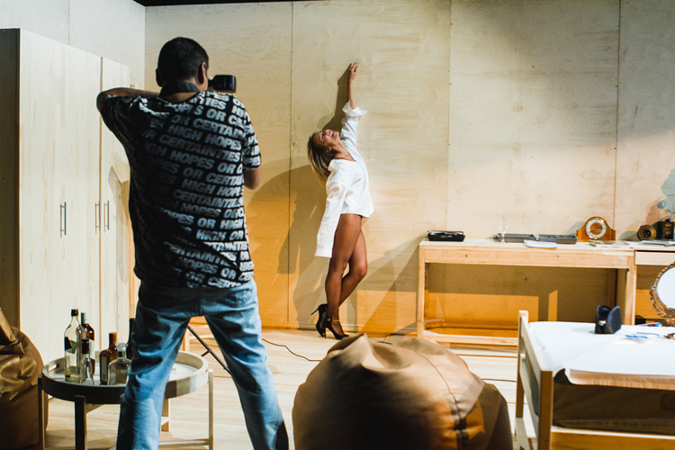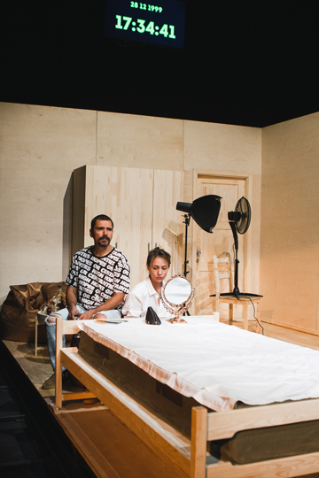 © Татьяна Перова Ячейки-пеналы меняются на авансцене, демонстрируя узловые моменты в отношениях героев, причем для каждой короткой сцены найден визуальный образ. Вот Вагин фотографирует Лену в эротичных позах: он — фотограф, она — модель, они заняты делом, но и соблазнением друг друга, конечно, тоже. Вот Мелания, вульгарная и агрессивная, но одновременно и жалкая, пытается привлечь внимание Павла. Вот Борис (он тут не ветеринар, как у Горького, а настоящий врач) умело и нежно отвлекает Лизу от воспоминаний о теракте, в который она попала. А вот все вместе встречают Новый год — тот самый, 2000-й, миллениум, и, как знак перемен, огромный плазменный телевизор показывает новогоднее обращение президента Ельцина, передающего полномочия и.о. президента, а потом и самого и.о. Речи-поздравления длятся восемнадцать минут, по сценическим меркам — огромное время, поэтому мы не слышим текста, президенты бубнят себе свои судьбоносные слова, а герои в это время выясняют отношения: Лизе опять плохо, Борис боится вмешиваться, Павел утешает сестру, Вагин его поддерживает, Лена разбирается с опьяневшей Меланией, которая решила попросить у жены отдать ей мужа.