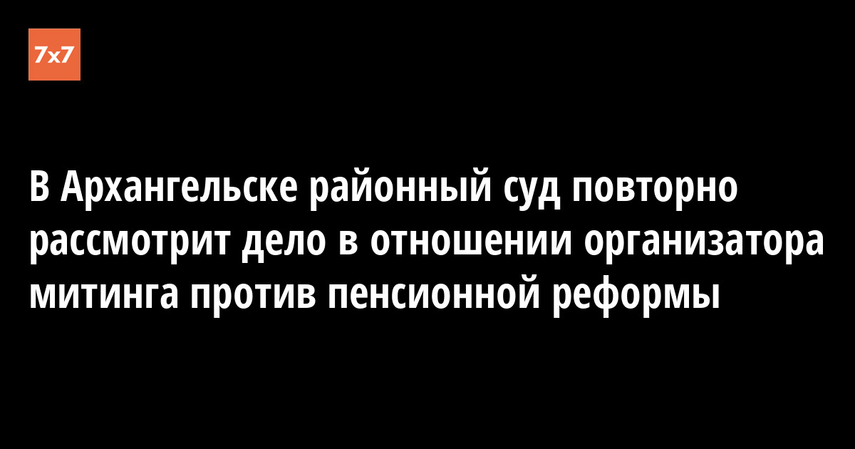 В Архангельске районный суд повторно рассмотрит дело в отношении организатора митинга против пенсионной реформы