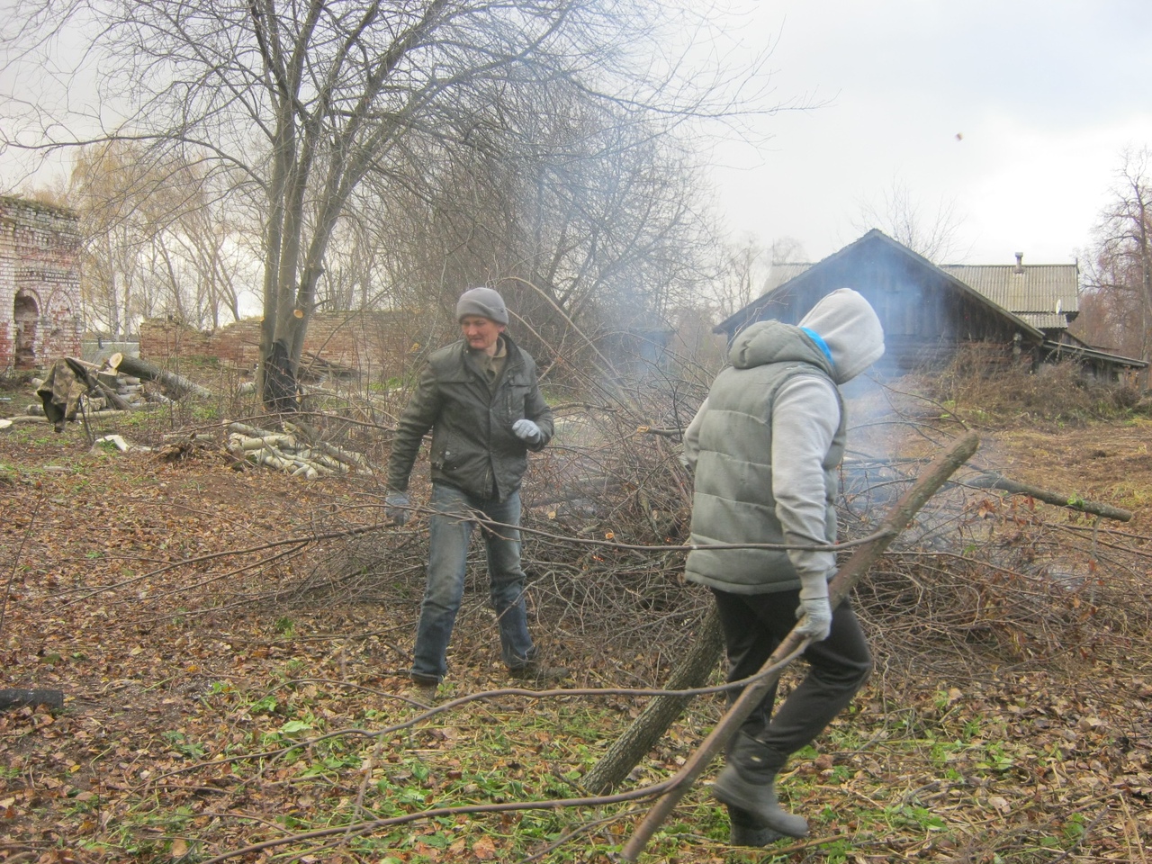 В этой акции из Республики Марий Эл приняло восемь человек. Из местного населения пришел нам помочь только один человек. Хотя желающие со стороны кировчан и были, но по какой - то причине они не смогли прийти на помощь в наведении порядка на территории церкви. Как это часто бывает, слова расходятся с действиями. Не смотря на это, работы были проведены. В принципе, в третью поездку мы постараемся закончить работы по уборке остатков деревьев и начнем работы по выкорчевыванию пней, приведем ландшафт территории церкви в должный порядок. Также участники акции посетили импровизированный местный музей. Как утверждает сама Галина, это не совсем музей. Хотелось бы видеть ЭТО , как образовательный центр "Здесь Подвига рождение", цель которого - показать, как формируется в человеке чувство малой родины, единство с миром .Как я понял из их впечатлений о посещении музея, больше всего их поразило, как Галина Бузанакова с таким трепетом относятся к истории своего края и района.