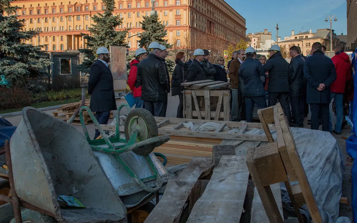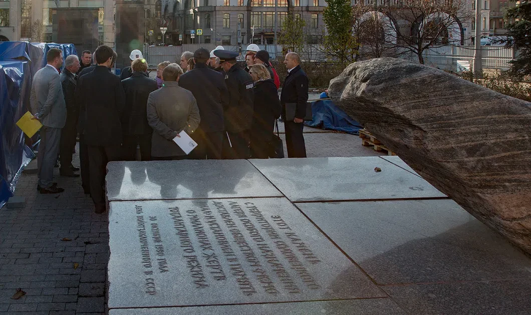 Они действительно встретились в понедельник, в три часа дня, у Соловецкого камня, Лубянка. В рамках экстренного закрытого совещания «в полях» руководство «Международного мемориала» во главе с Еленой Жемковой и представители московских властей, в том числе руководитель Департамента региональной безопасности и противодействия коррупции города Москвы Владимир Черников и руководитель Департамента строительства города Москвы Андрей Бочкарев, обсудили тактику проведения акции «Возвращение имен».