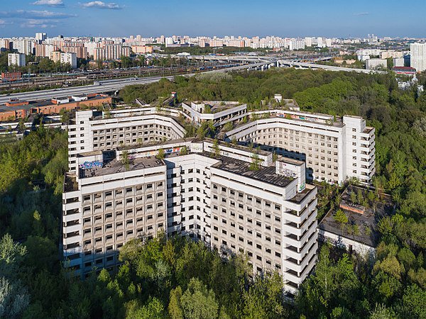 Долгие годы Ховринская больница пользовалась дурной славой — как одно из самых зловещих мест Москвы. Ее начали строить в 1980 году, проект был нестандартным для тех лет — в виде треугольного креста с разветвлениями на концах, с высоты напоминающего знак биологической опасности.