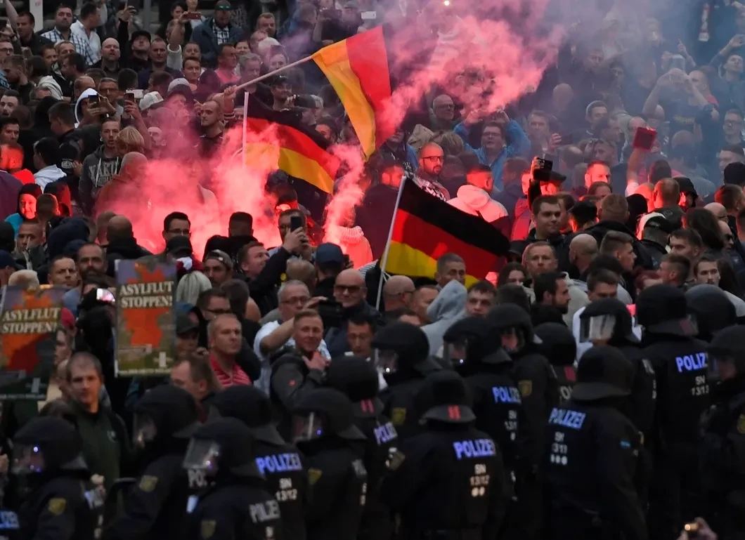Напомним, в конце августа в городе Хемнице в ночной драке погиб гражданин Германии. Еще двое были ранены. По обвинению в убийстве полиция задержала двоих беженцев — выходцев из Ирака и Сирии. Появилась информация, что мусульмане приставали к женщине, а немец за нее заступился. Позже это не подтвердилось. Выяснилось, что погибший и сам приехал когда-то в Германию с Кубы. Да и в драке участвовали с десяток человек. Но происшествием воспользовались ультраправые, на следующий день они вывели на улицы людей с антимигрантскими лозунгами. Пришло меньше сотни человек. Но дальше их поддержали футбольные фанаты, а потом и откровенные неонацисты. К протестам стали присоединяться обычные бюргеры, недовольные «засильем мигрантов». И 1 сентября на улицы Хемница вышли уже десять тысяч человек.