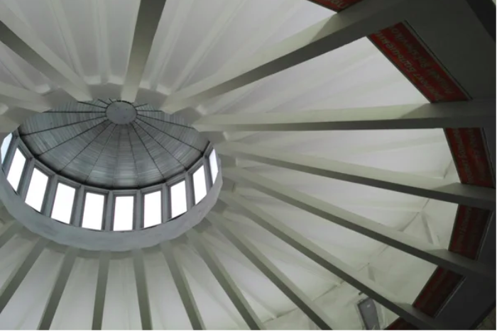 По словам авторов телеграм-канала, в кассовом зале станции есть световой купол. Сквозь купол в ясную погоду проникает солнечный луч, который постепенно спускается по наклонному ходу и освещает прилегающую к эскалаторам часть платформы подземного вестибюля.