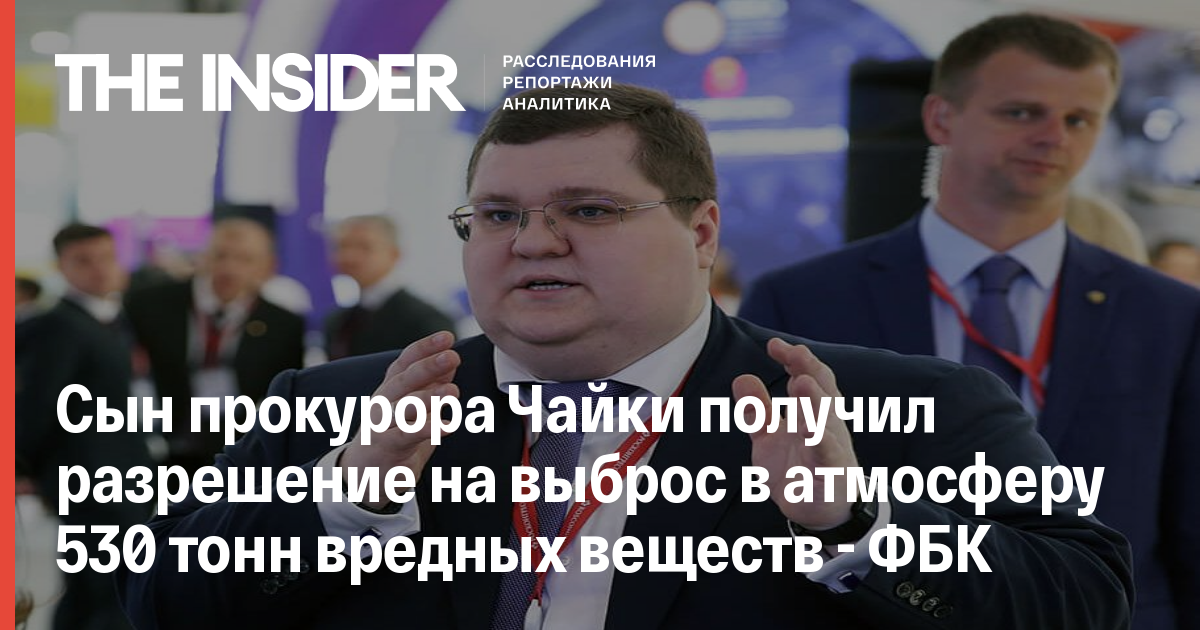 Компания Игоря Чайки, сына генпрокурора РФ, получила разрешение на выброс в атмосферу до 530 тонн вредных веществ. Об этом сообщил сотрудник Фонда борьбы с коррупцией Николай Ляскин.