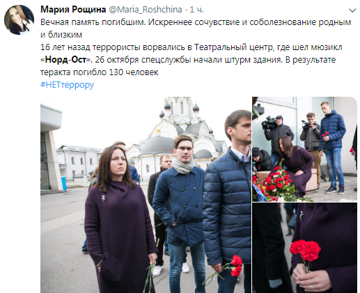 23 октября 2002 года в здании театрального центра, где показывали мюзикл «Норд-Ост», террористы захватили 914 зрителей и участников шоу. 26 октября началась спецопреция по освобождению людей. В ходе штурма погибли 130 человек.