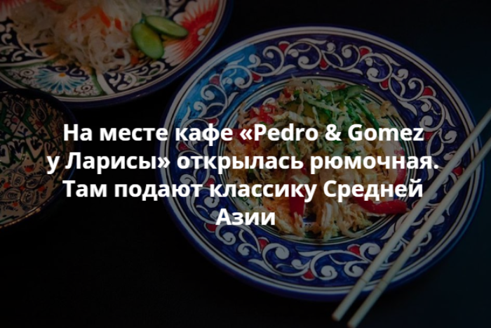 В доме 29 по улице Рубинштейна, где раньше работало популярное кафе «Pedro & Gomez у Ларисы», заработала рюмочная, которая взяла название «Чебуреки и рюмочная у Ларисы». Она сохранила интерьер прежнего заведения, сменив лишь вывеску.