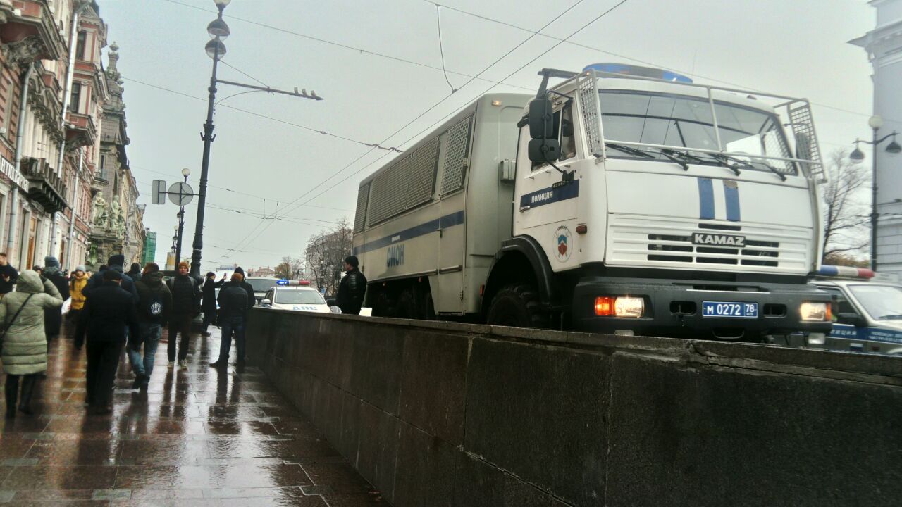 По подсчетам корреспондента «Бумаги», всего в акции участвует около 50 человек. Кроме того, на Малую Садовую пришли активисты НОД.