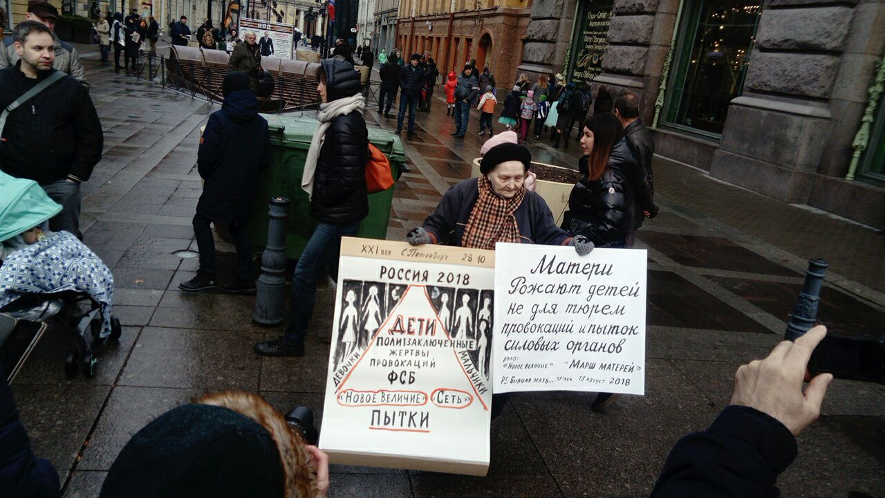 В Петербурге акция прошла на пересечении Невского и Малой Садовой. На нее пришло больше 60 человек