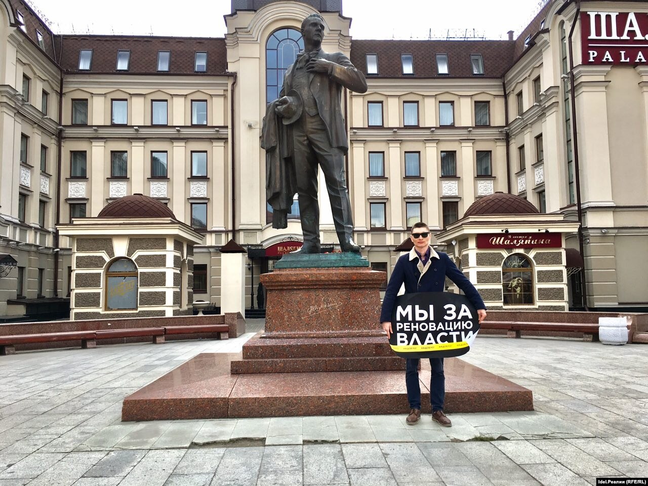 Полицейские также попросили активиста не распространять наклейки в поддержку украинского режиссера Олега Сенцова, который тогда держал голодовку в российской колонии.
