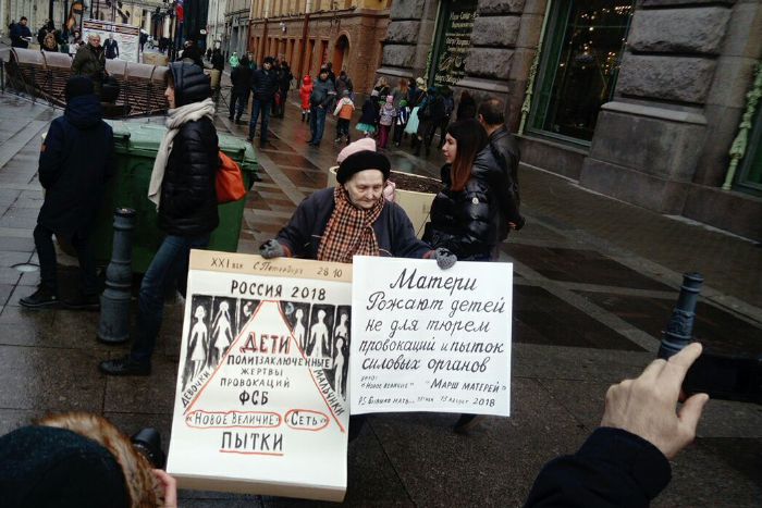 В Петербурге двух участниц акции в поддержку фигурантов дел «Сети» и «Нового величия» оставили на вторую ночь в отделе полиции