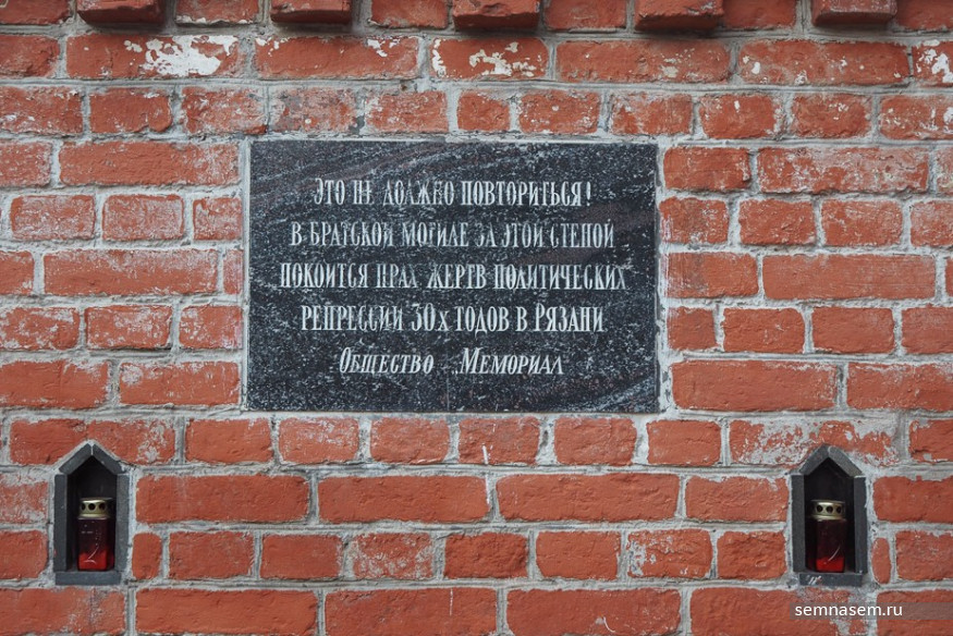 Еще одно место, связанное с расстрелами, находится у входа в старообрядческую церковь на Скорбященском кладбище. В двух двухэтажных домах в 1930-е годы поселились семьи сотрудников НКВД — они привозили и складывали трупы расстрелянных прямо в подвалы под домами. Известно, что тела расстрелянных тайно захоранивали там с осени 1937 до весны 1938 года. У входа на территорию церкви находится Стена памяти жертв политического террора. На стене установлена памятная мраморная доска: «Это не должно повториться! В братской могиле за этой стеной покоится прах жертв политических репрессий 30-х годов в Рязани».
