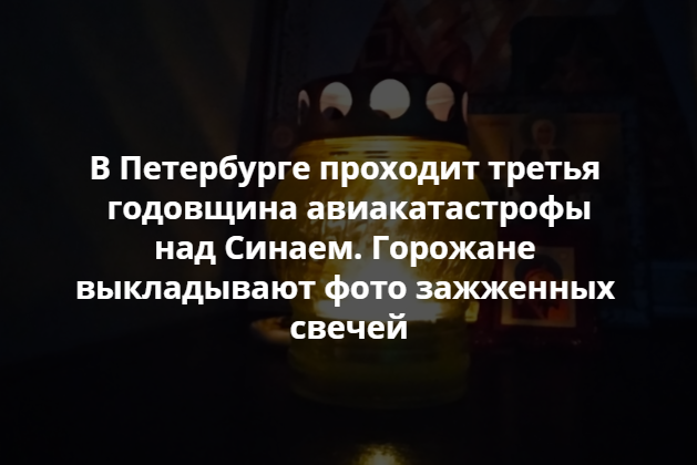 В среду, 31 октября, в Петербурге проходят памятные мероприятия, посвященные годовщине авиакатастрофы над Синаем. Ровно три года назад в самолете, который летел из Шарм-эш-Шейха в Петербург, произошел взрыв. Погибли 224 человека.