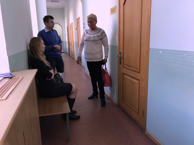 Процесс по делу о получении взятки руководителем Соловецкого многофункционального центра Михаилом Магидом, кстати, закрытый. Фото-, видео- и аудиозапись запрещены, поэтому рассказывать буду по воспоминаниям — память у меня профессиональная.)) Передо мной опрашивали бывшую главу администрации Соловков — Амброче Елену Васильевну, которую продержали там 1 час 10 минут, и вышла она оттуда красная, как ее сумка. И тут вызвали меня…