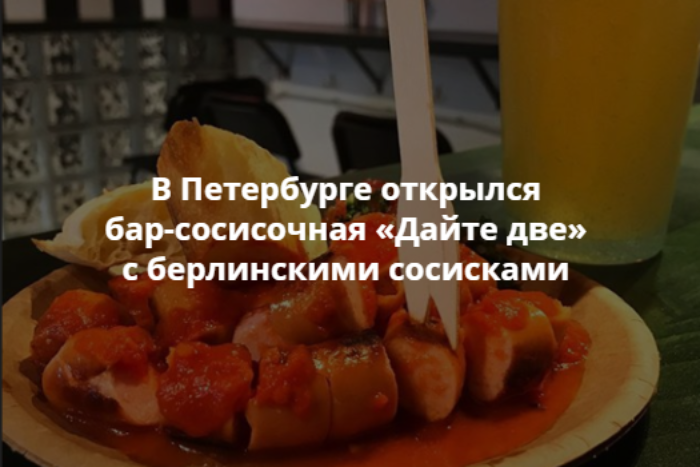 Бар-сосисочная «Дайте две» открылся на 6-ой Красноармейской улице, недалеко от станции метро «Технологический институт».