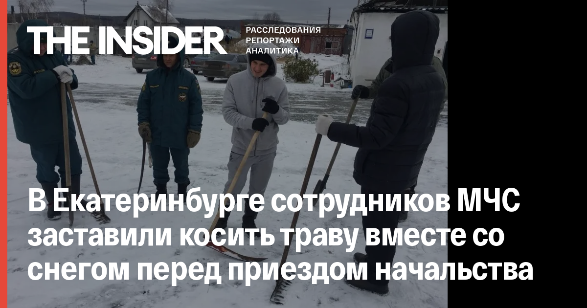 В Екатеринбурге сотрудников МЧС заставили косить траву вместе со снегом перед приездом начальства
