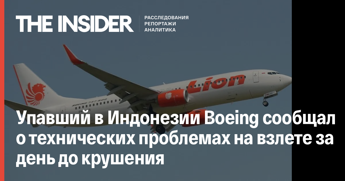 У Boeing 737 MAX, потерпевшего крушение в Джакарте, за день аварии возникли технические проблемы. Об этом сообщает Reuters со ссылкой на главу управления администрации аэропорта Бали и на пилота, слышавшего переговоры в эфире.